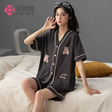 洁丽雅睡衣女款2022年新款夏季开衫短袖可外穿春秋薄款家居服套装